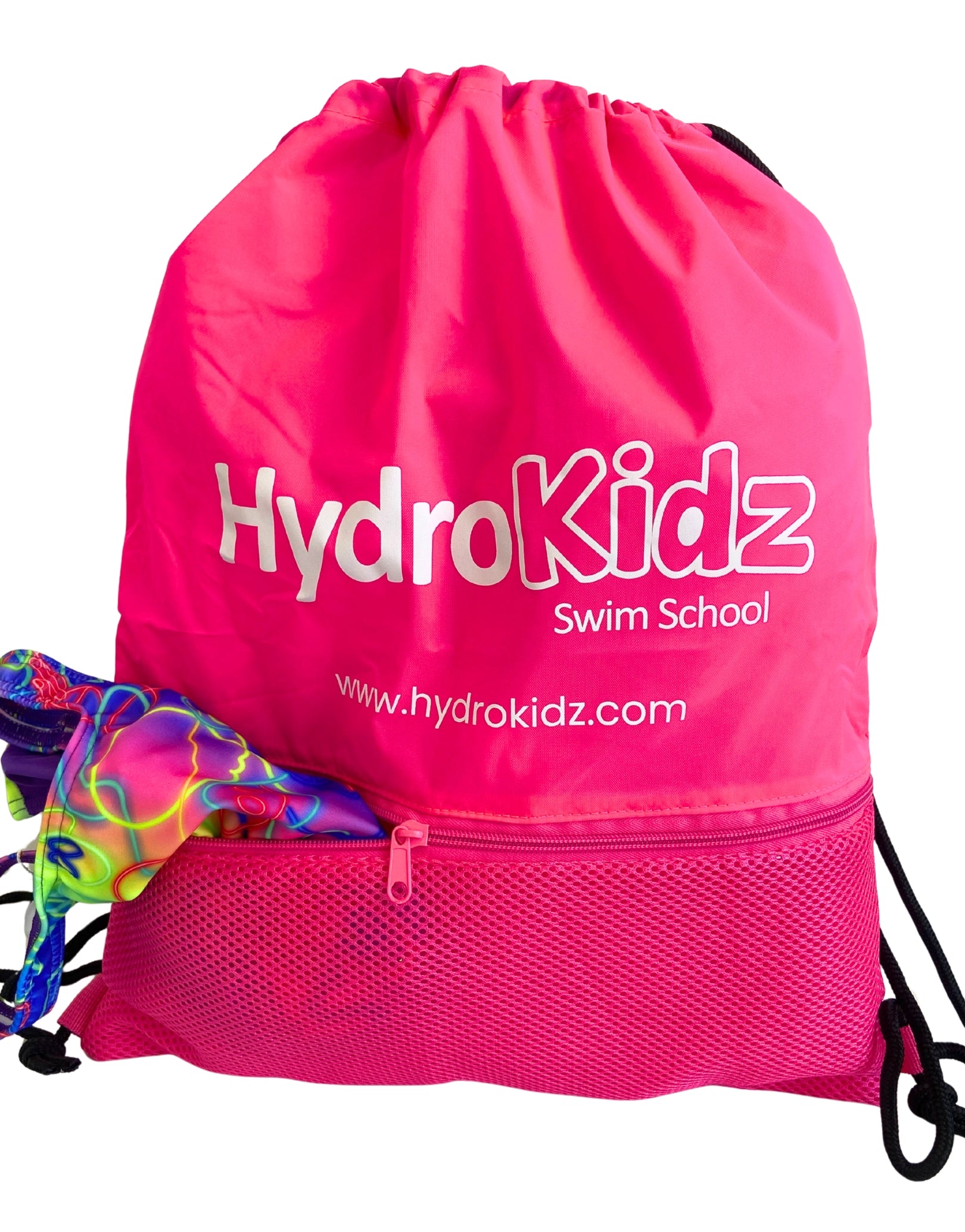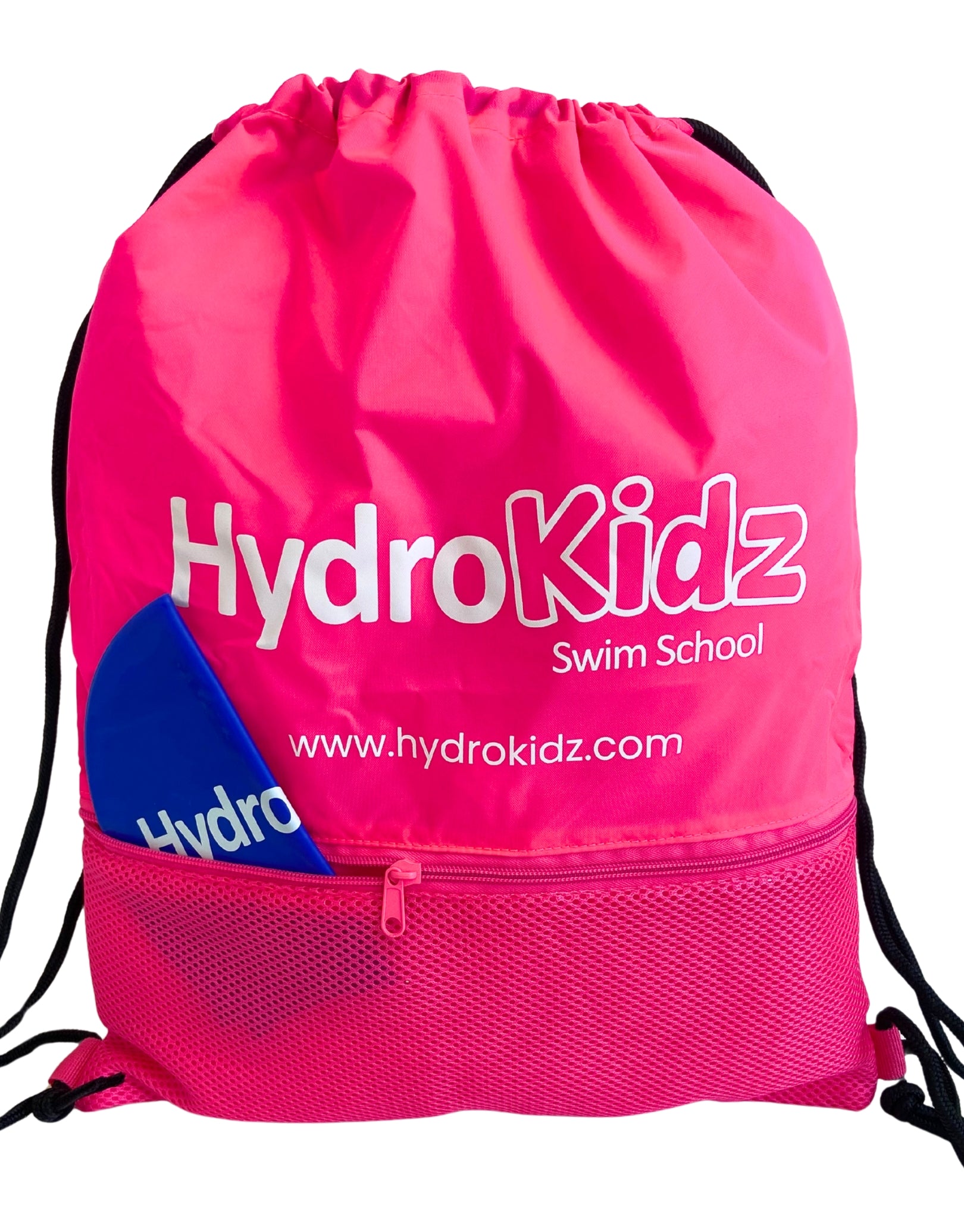 This Childrens Deluxe Medium Swim Bag With Mesh Pocket from HydroKidz is perfect to keep children's swimming gear together for swimming training or swimming lessons. It features a large capacity waterproof bag with a HydroKidz logo across the front in white and a name label on the back so you can keep track of their gear. There is a useful zipped 16.5cm depth mesh pocket at the bottom of the bag so that they can keep wet and dry items separate. There are adjustable black cords down the side of the bag to keep their swim gear secure and enable the child to wear the bag as a backpack. Available in four bright colours, bright pink, royal blue, lime green and rich red. Matching HydroKidz Swim Caps are also available.