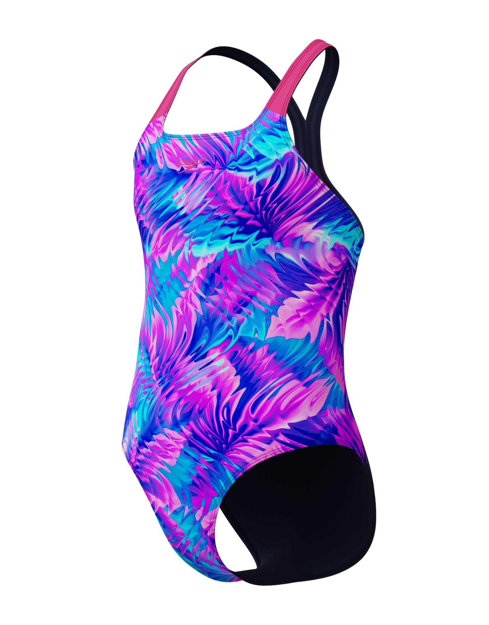 The Girls Allover Printed Powerback Swimsuit by Speedo is designed for junior training and active swim sessions, delivering lasting comfort and performance. Made with durable Endurance+ fabric, it resists chlorine and pilling to retain its shape swim after swim. Featuring classic coverage and powerback straps, it supports unrestricted shoulder movement and flexibility.
