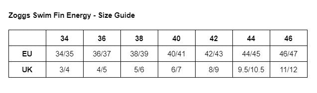 TYR - Swim Fin Energy - Turquoise/Black - Product TYR - Swim Fin Energy - Turquoise/Black - Product in Use Back TYR - Swim Fin Energy - Turquoise/Black - Product in Use Side Zoggs - Swim Fin Size Guide