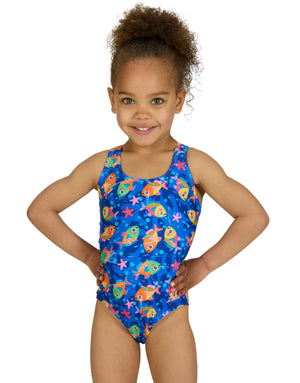 Designed for young swimmers who demand both style and performance, the Java Fish Actionback Swimsuit delivers exceptional comfort through its innovative back design that prioritises unrestricted arm movement. The vibrant aquatic-themed print in multi-colours contrasts beautifully against the blue base, whilst bold pink straps provide secure support and visibility in the water. Constructed from Ecolast fabric, this swimsuit resists chlorine degradation and maintains its shape through regular use, making it a reliable choice for active water play and swimming lessons.