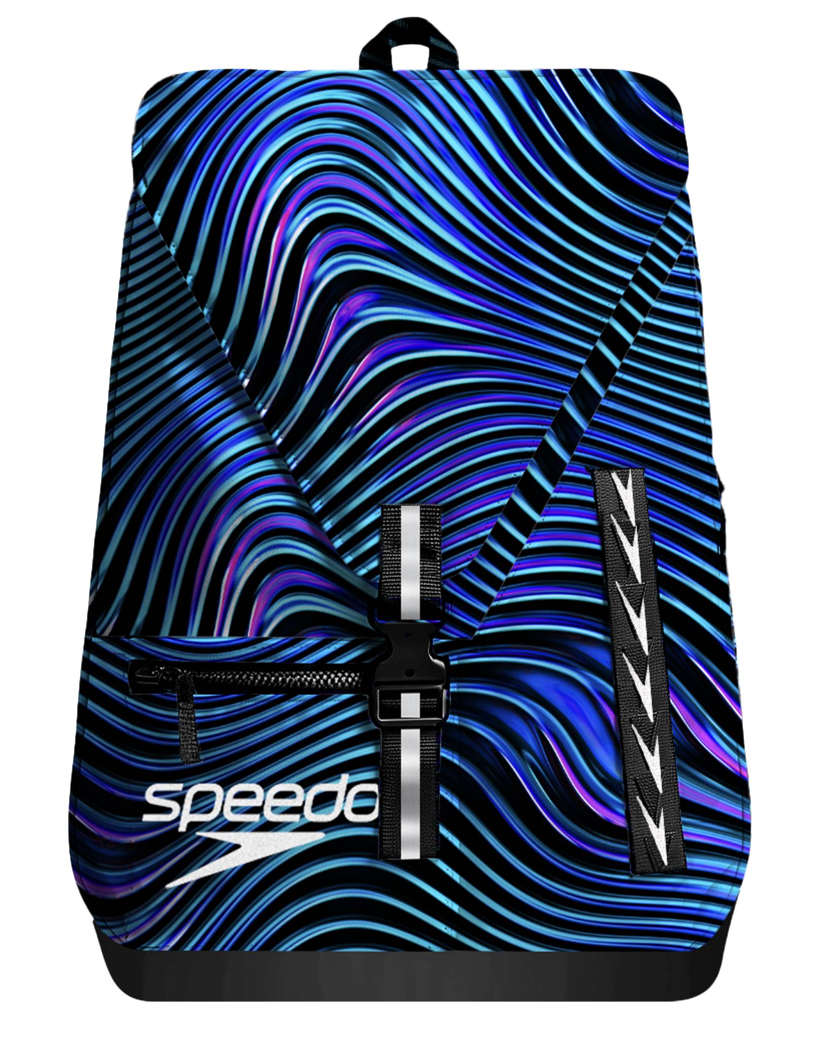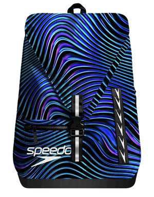 This 35L Team Backpack Print from Speedo, combines practical design with swimmer-specific functionality. Featuring a dynamic wave pattern in blues, purples and black to the front of the rucksack and on the straps. The main compartment features a removable, water-resistant kit bag that effectively separates wet and dry belongings, whilst the padded laptop sleeve with secure closure accommodates school essentials alongside swim gear. A water-resistant base shields contents from damp pool environments. Multiple storage options—including a generous side water bottle pocket, concealed zipper pocket, and front zip compartment—ensure systematic organisation. The customisable front panel allows teams to display their colours and create a unified look.