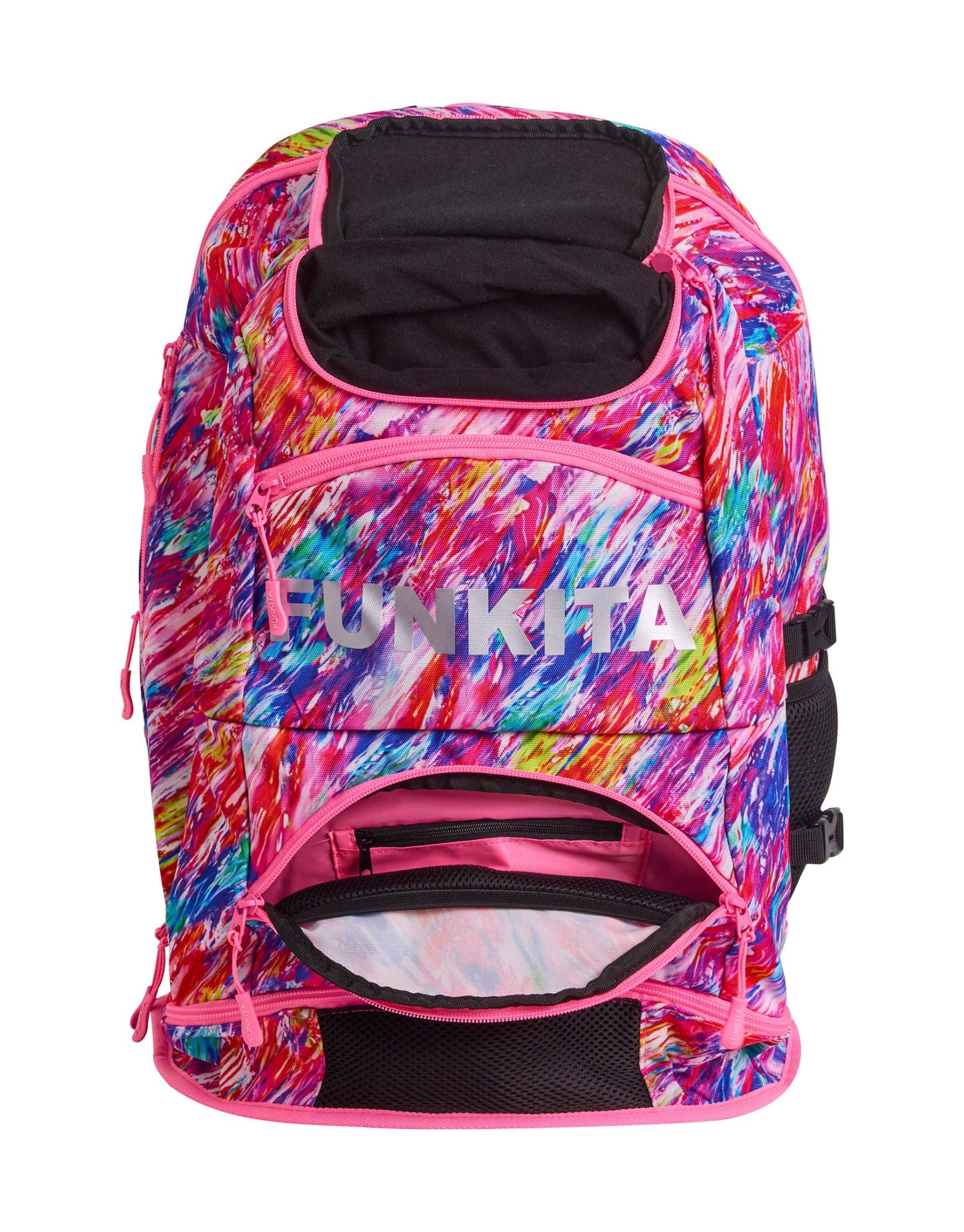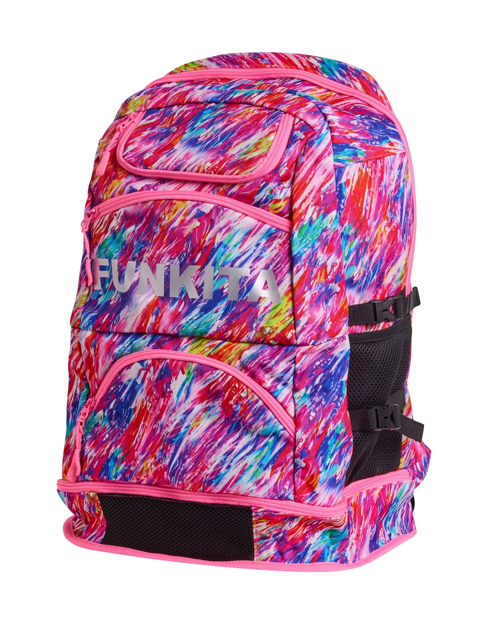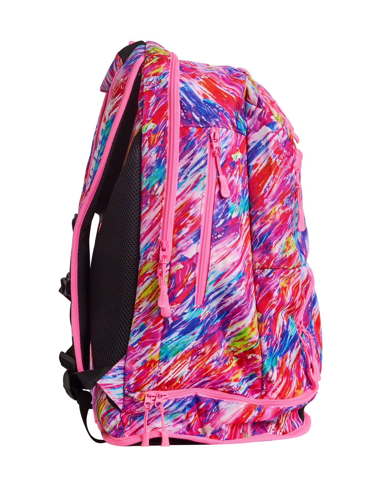 The Blow In Elite Squad 36L Backpack by Funky Trunks combines multi-coloured prints with smart organisation for swim gear and everyday essentials. With 36L storage, it offers a goggles compartment, a waterproof base, a cooler pocket, mesh sections, and laptop space. Comfortable padded straps and a chest strap provide ergonomic support for all-day use.