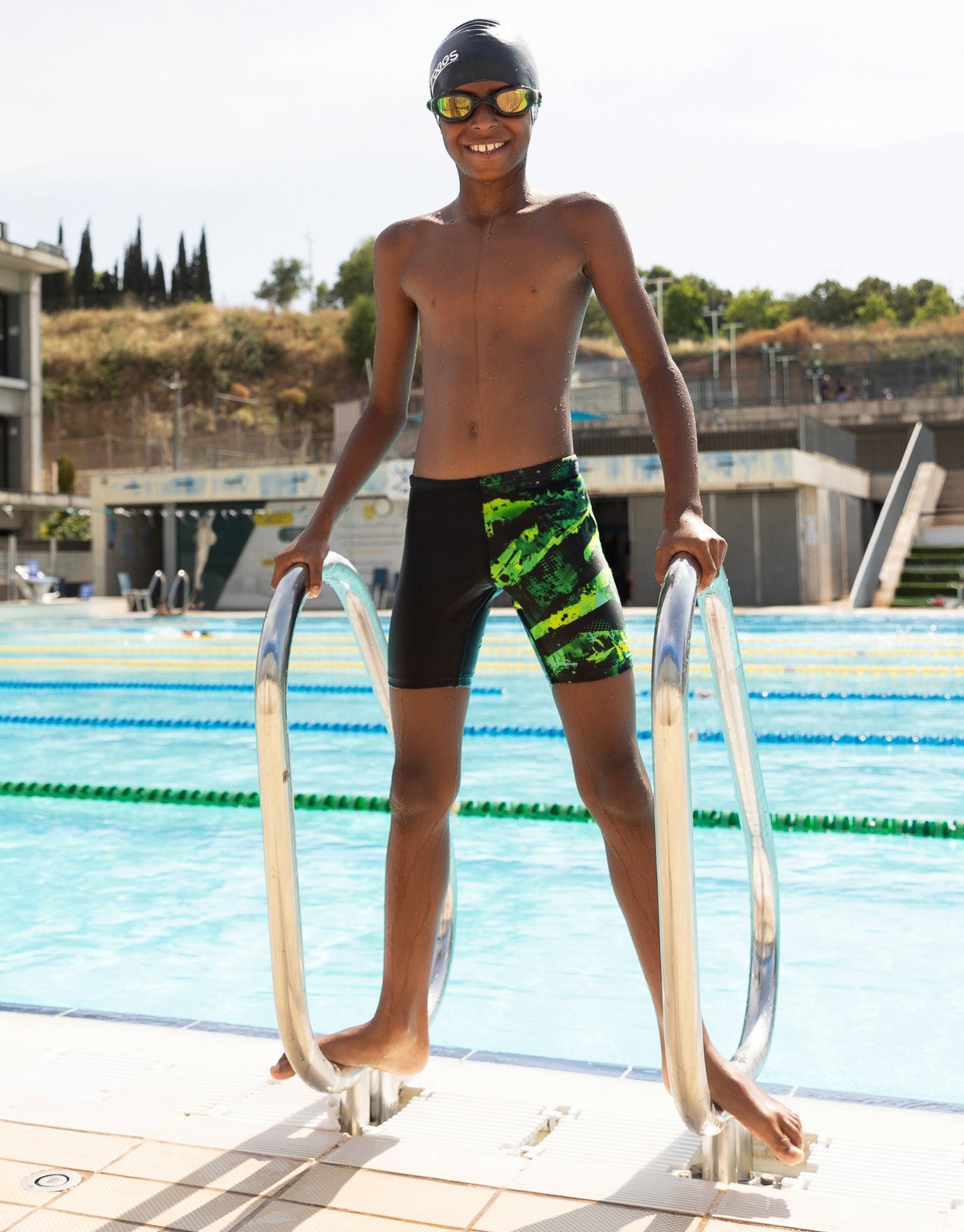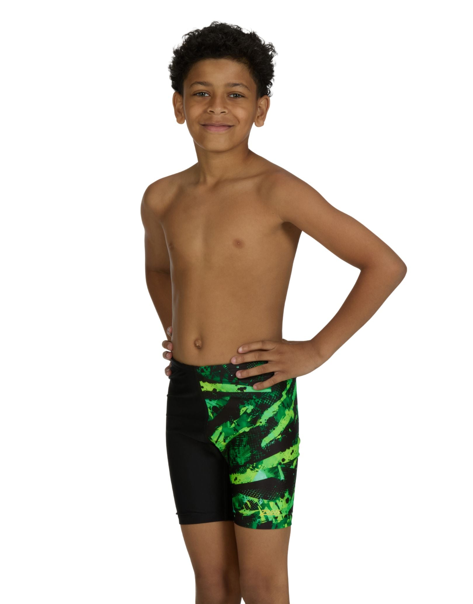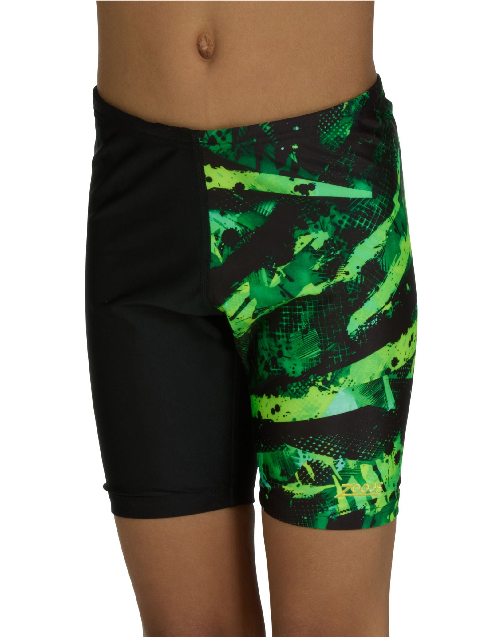 Experience superior performance in the pool with Zoggs' Boys Greengame Mid Jammer. Engineered from durable Ecolast fabric, these jammers deliver exceptional chlorine resistance for extended wear. The black base with striking bold green and black panelling creates dynamic visual appeal, while the integrated triangle front lining ensures optimal comfort and support during every stroke. Built for swimmers who demand both style and functionality.