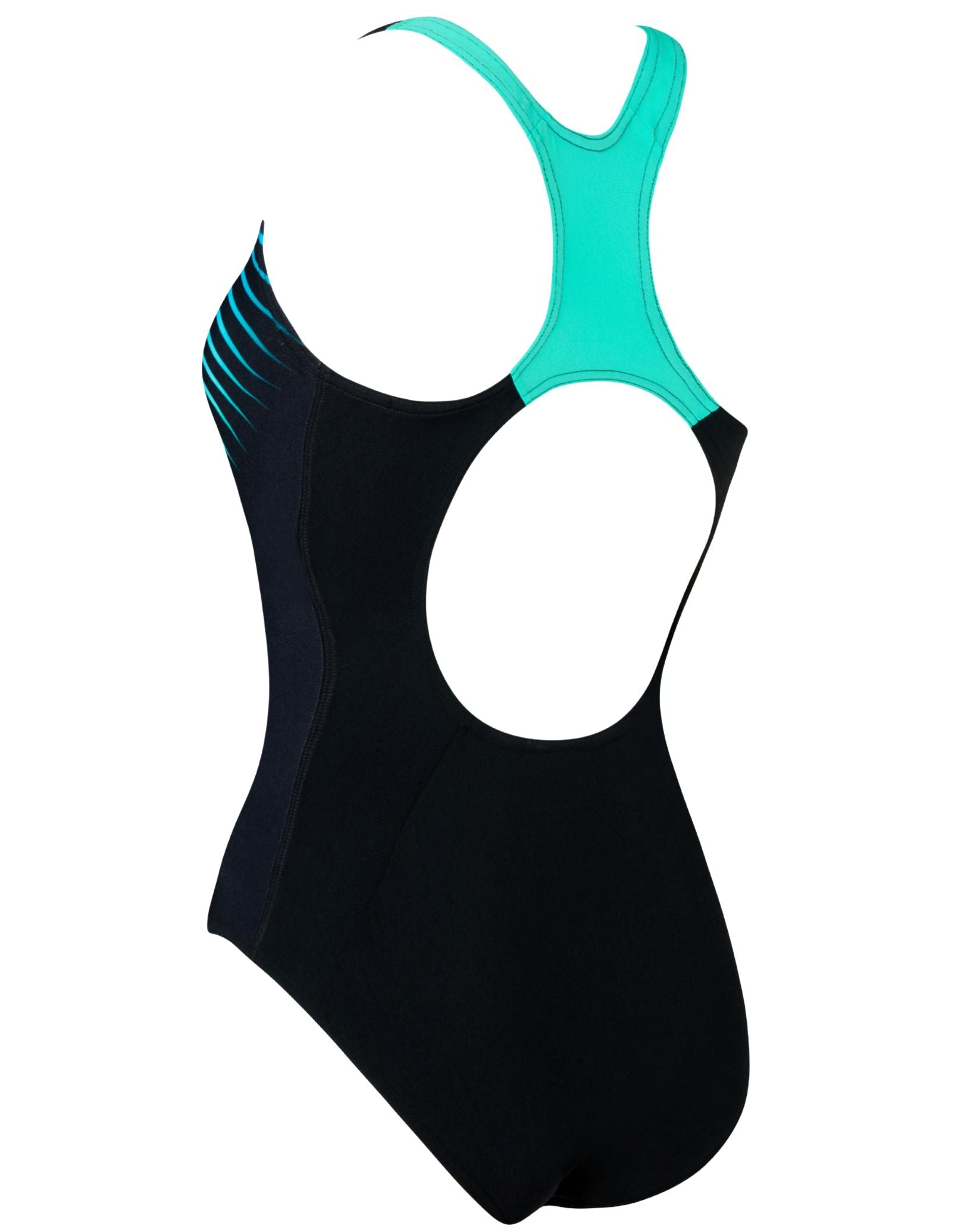 Zoggs' Extender Powerback delivers reliable performance for dedicated swimmers and training sessions. This one-piece combines a striking mint geometric design against a black base with supportive mint straps for enhanced stability. The medium-cut leg, shelf bra construction, and lined gusset provide practical comfort during extended water time. Engineered from Ecolast—a durable fabric crafted from recycled plastic bottles—it resists chlorine degradation, maintains colour vibrancy through repeated use, and offers UPF50+ protection. An excellent choice for swimmers seeking longevity and environmental responsibility without compromising on functionality.