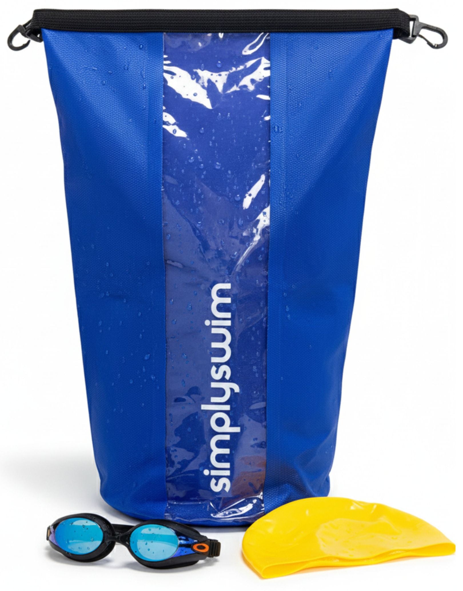 The Simply Swim Large Dry Bag with window is a 10L storage bag, ideal for keeping your larger personal items and swim kit dry around the pool or at the beach, and is perfect for protecting your belongings from soggy towels and swimwear inside your kit bag. The long, clear window allows you to easily see the contents, while the handy clip hook lets you attach the bag to a locker or another bag. When folded over three times and clipped shut at the top, this dry bag helps ensure your items remain dry at the pool, beach, or lake.
