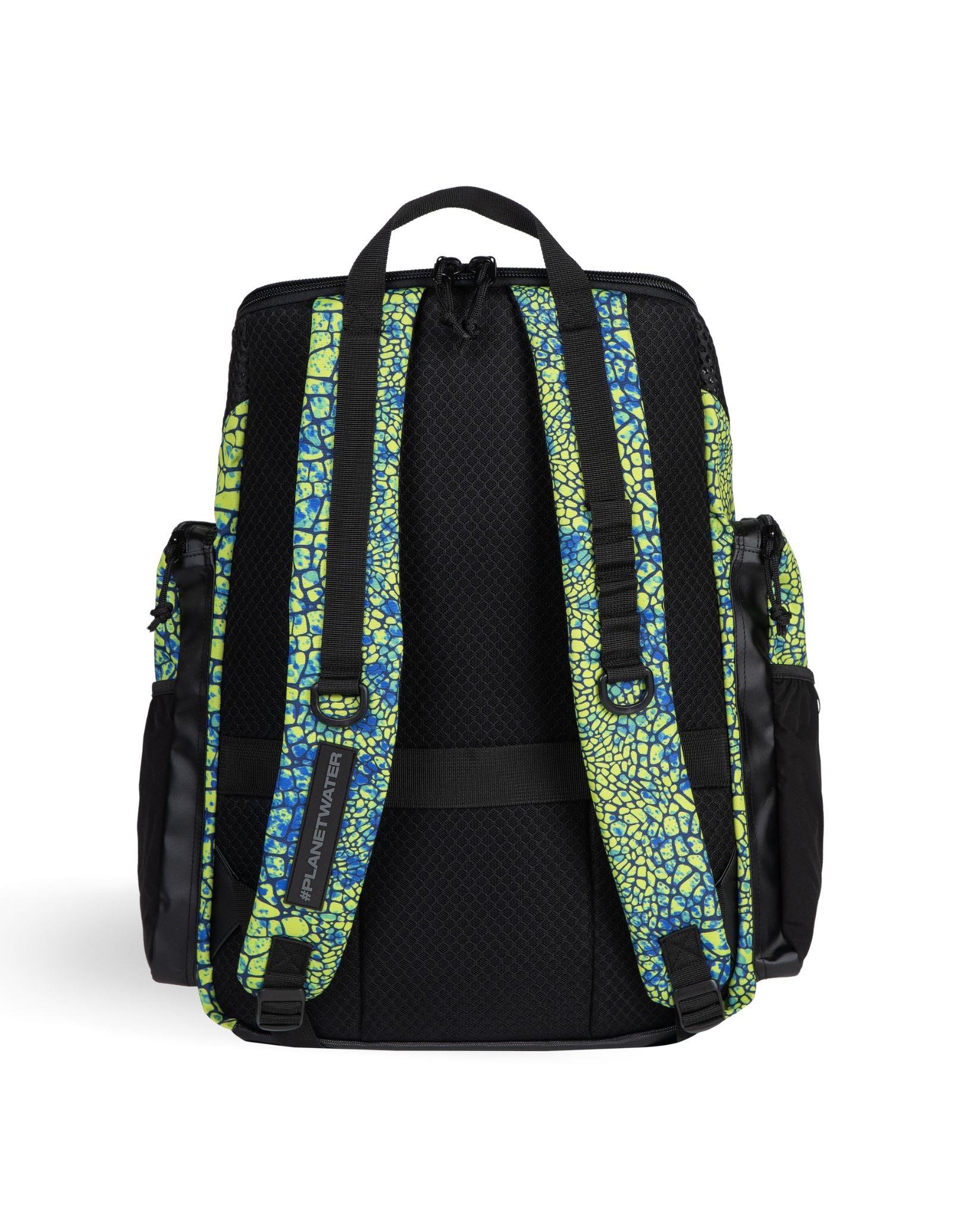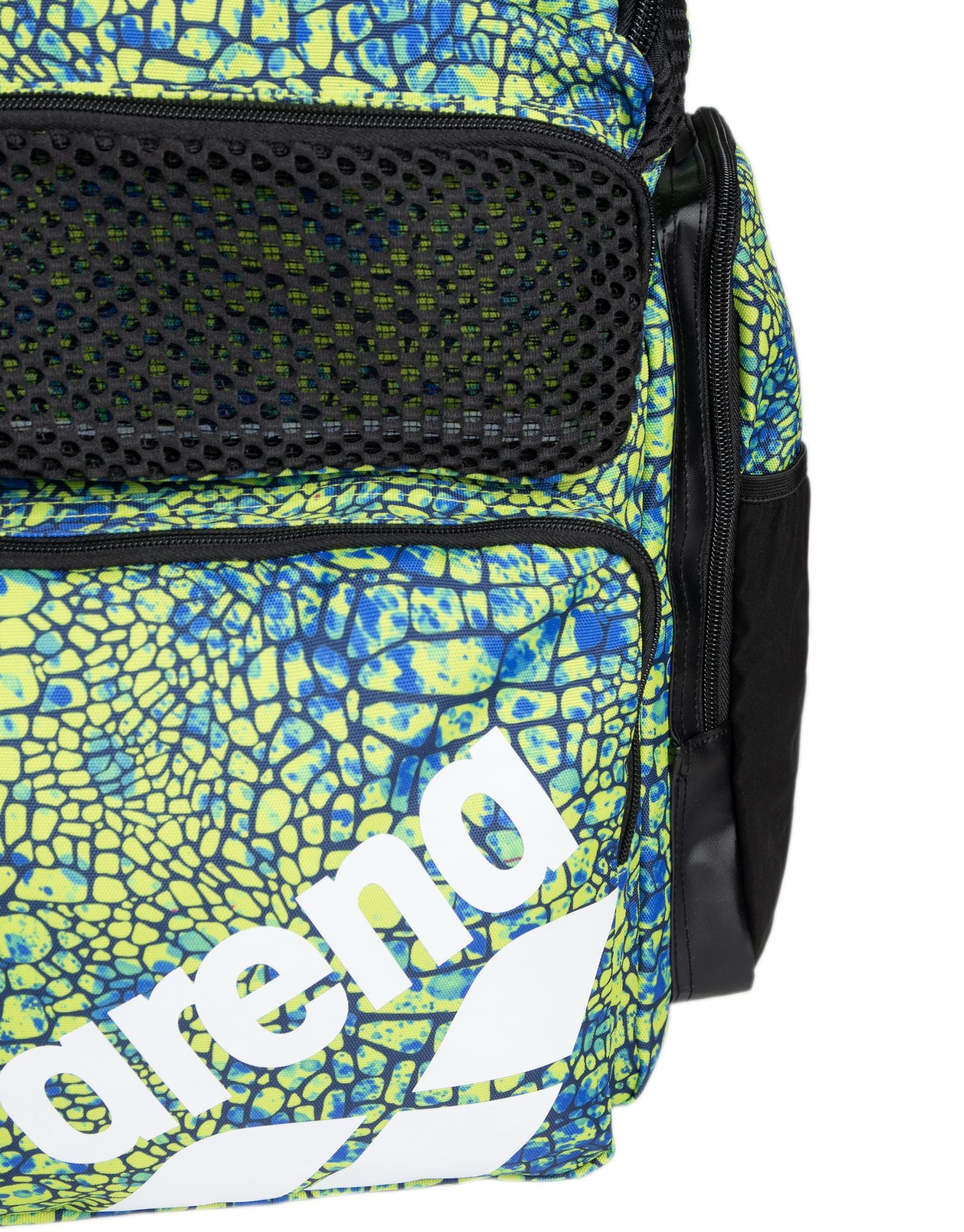 The Snakeskin Green One Go 45L Backpack from Arena features bold snakeskin prints in green, combining standout style with athlete-ready functionality. Designed for swimmers and travelers, it offers a spacious top-loading main compartment, four zipped exterior pockets, and water-repellent fabric with moisture-control technology to keep gear dry and organized. With smart additions like a laptop sleeve and trolley strap, this durable swim backpack is perfect for training, travel, and daily use.
