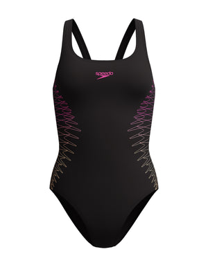 The Placement Muscleback Swimsuit from Speedo features a reverberating Boom logo graphic. The classic musclback style offers flexibility and freedom of movement during your swim. Made from EnduraFlex fabric with 4-way stretch and shape-retaining CREORA® HighClo™, the swimsuit is chlorine-resistant and durable.